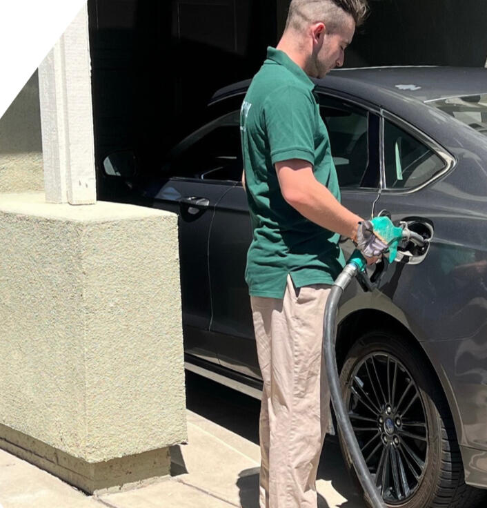 - We fill your tank with fuel from your favorite gas station, or with our premium brand, saving you time and money by eliminating the need to make the trip yourself.